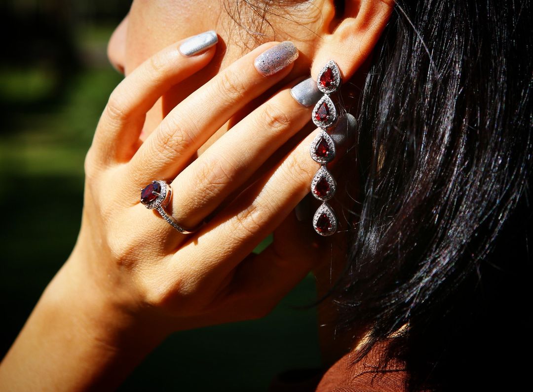 Natural Garnet Dark Red Earrings and the ring❤️ This is Elegant beautiful.